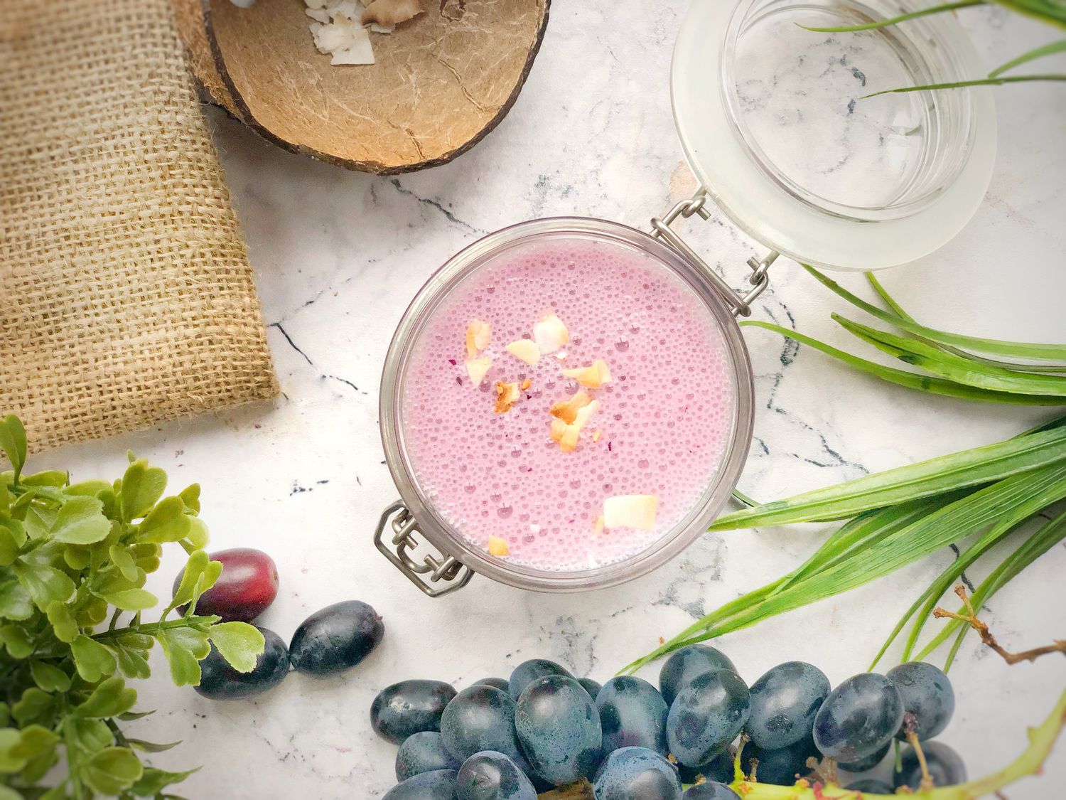 Grapes are a sweet fruit, one of the sweetest, so this shake shouldn't be relied on every day. However, if you do need a natural sweet boost to stave off any processed sugar craving, or trying to convince an SNB (a "Smoothie Non-Believer") that they should embark on a bit of nutritious hydration, this one is the one to make them!