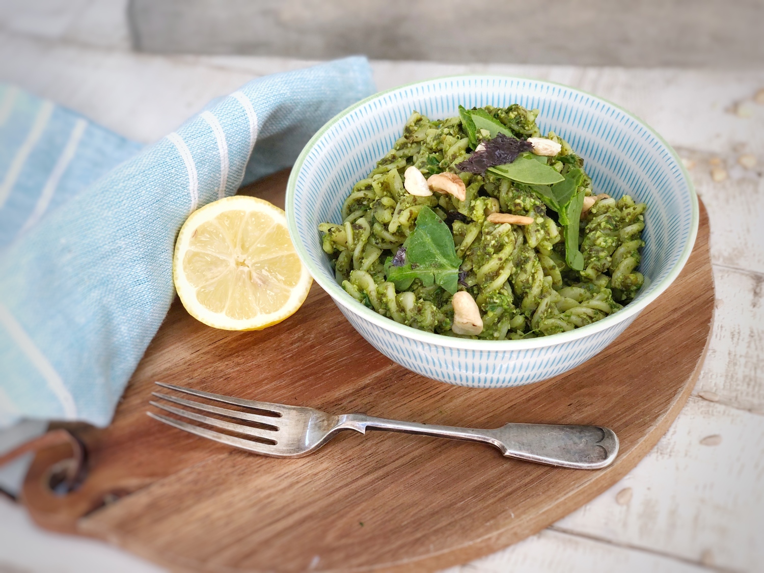 Don't opt for shop brought pesto every time, as this recipe is a great adaption what has less fat in it, plus you can use whatever herb you like if basil isn't your favourite.